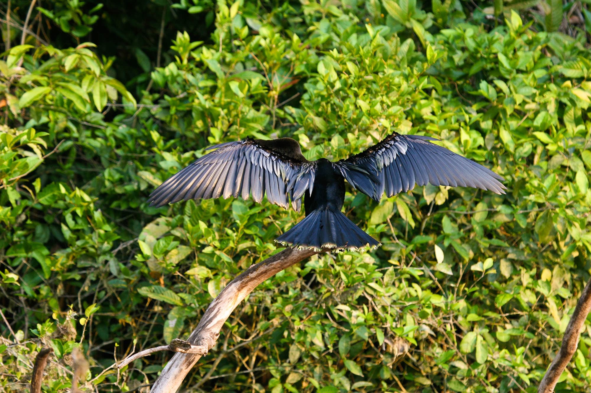 O Biguatinga (Anhinga anhinga) vive nas margens dos rios e é frequentemente encontrado na mata Ciliar.